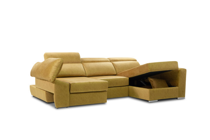 – Brazo chaiselongue recto con dos cojines de decoración.